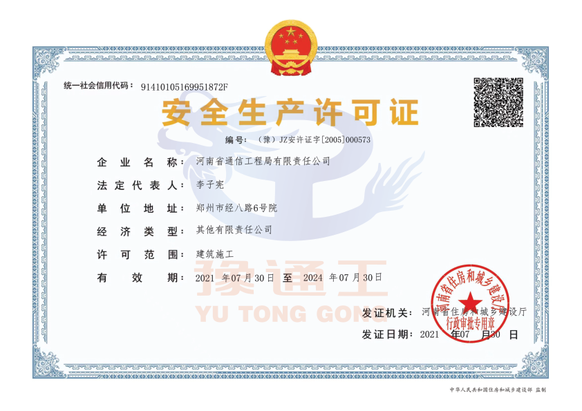 電子與智能化、建筑裝修裝飾、消防設施工程專業承包壹級;鋼結構工程專業承包貳級;建筑工程、電力工程、機電工程、城市及道路照明工程專業施工總承包叁級;施工勞務不分等級。